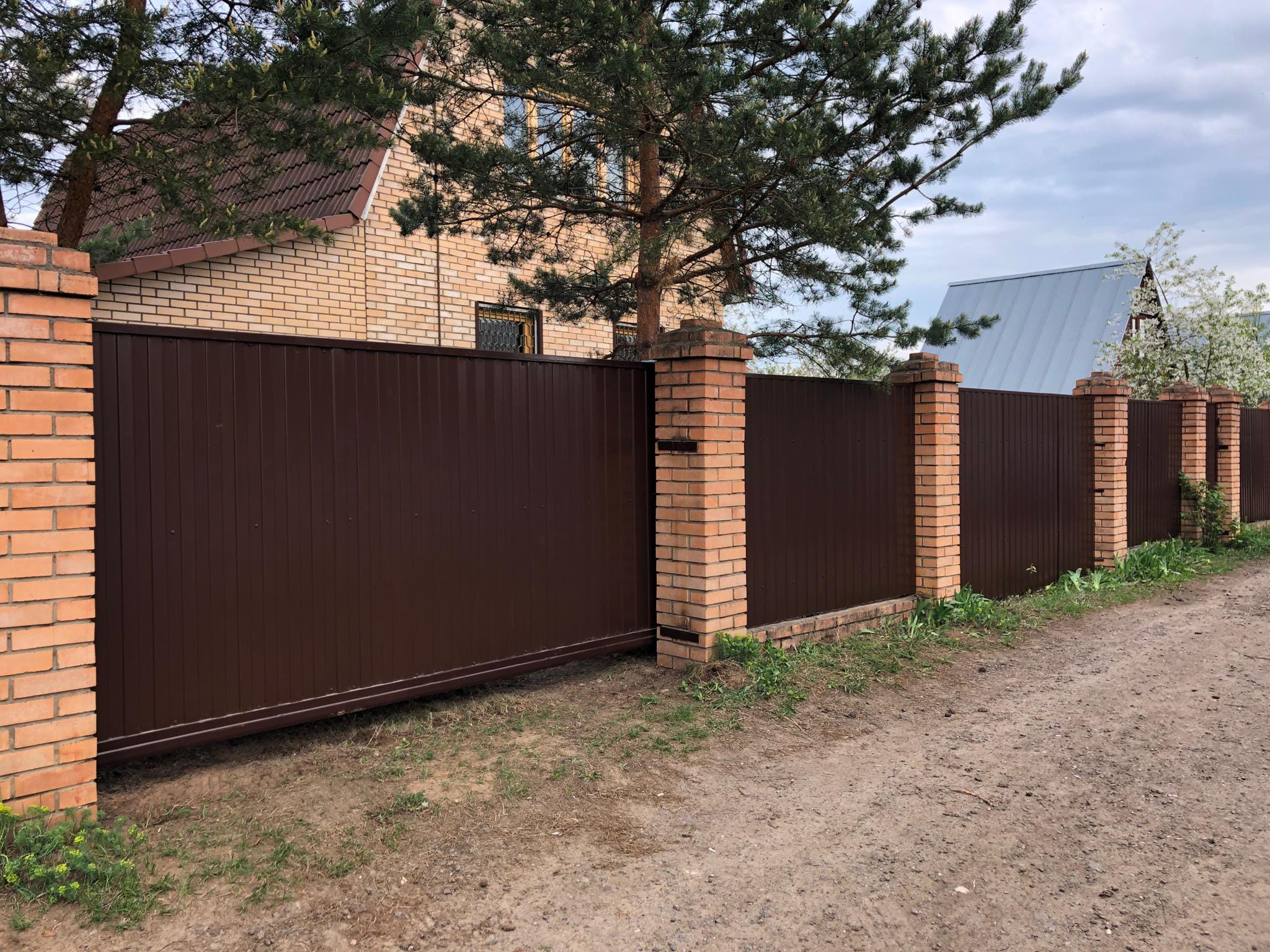 Откатные ворота из профнастила на винтовых сваях (цена на бетонном основании +20000р)